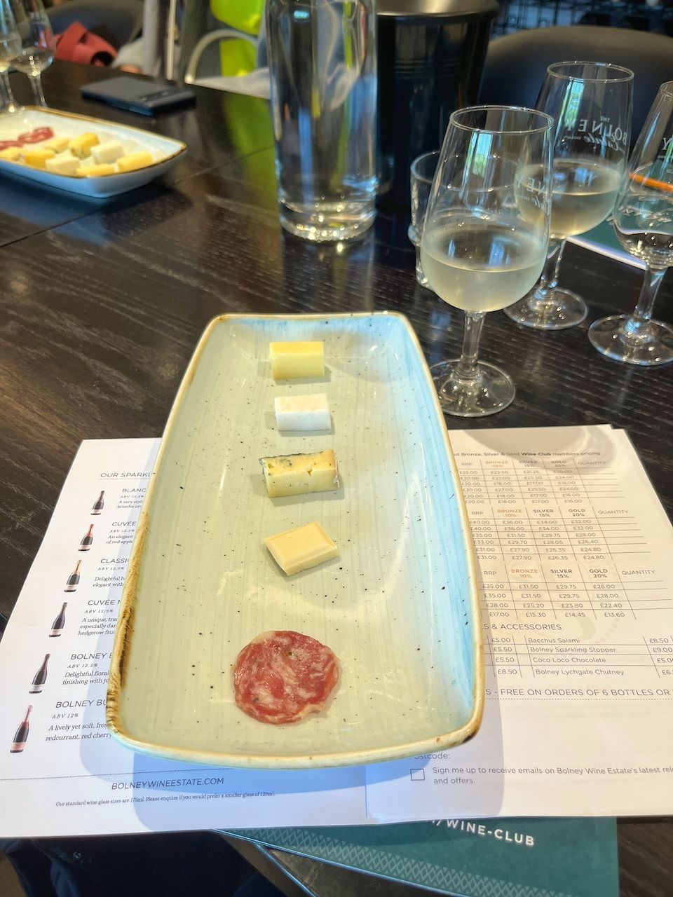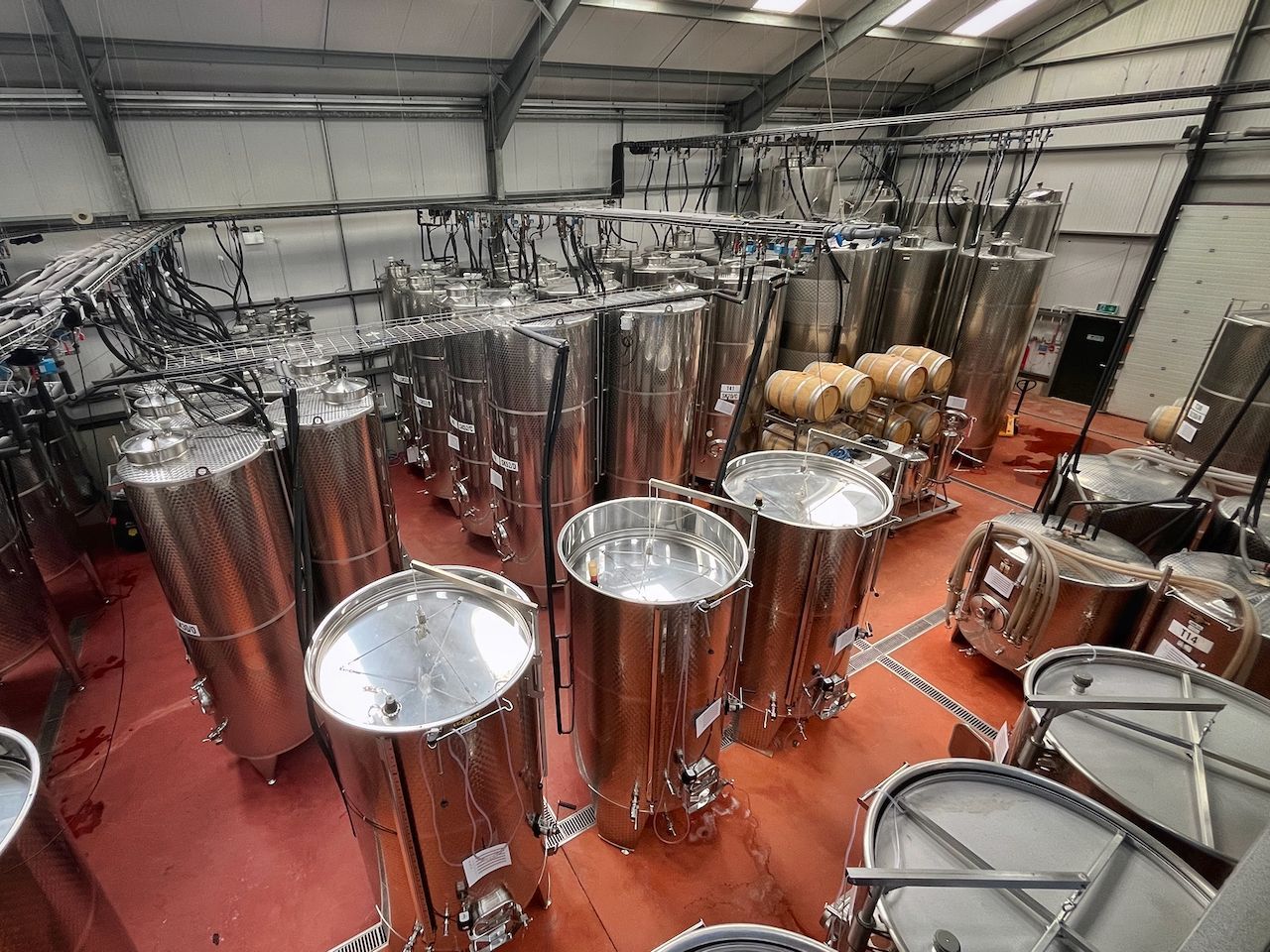 My first stop was to Albourne Estate. The property is a former dairy farm with 22 acres of vines planted mostly in 2010. Along with the standard Champagne grapes of chardonnay, pinot noir, and pinot meunier, Albourne also grows some pinot blanc, pinot gris, and bacchus (more on this unusual variety later). The winery produces around 3,000 cases per year, which is definitely in the “boutique” category. I tasted a variety of sparkling and still wines including a 2022 chardonnay that featured 100% malolactic conversion (a natural process in which the very tart malic acid in a wine is transformed into a softer and less extreme lactic acid), but still had plenty of lift and a nice green apple and yellow apple skin notes. I also enjoyed a non-vintage sparkling wine with a fresh lemon and tangerine profile.